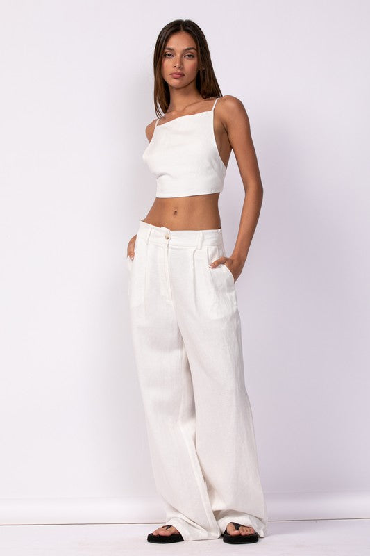 Alex Linen Open Back Crop Top (White)